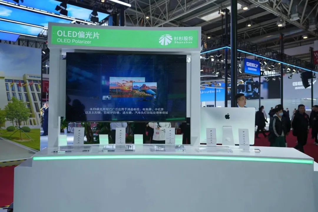 在新型显示技术领域,杉杉设立OLED偏光片展区和车载偏光片展区,展出OLED TV、OLED IT、OLED Mobile和可折叠等新型产品,以及车载偏光片产品。杉杉目前已实现OLED手机用偏光片量产出货,并通过自主研发和并购,将实现在OLED TV、车载偏光片等高端显示市场的突破。