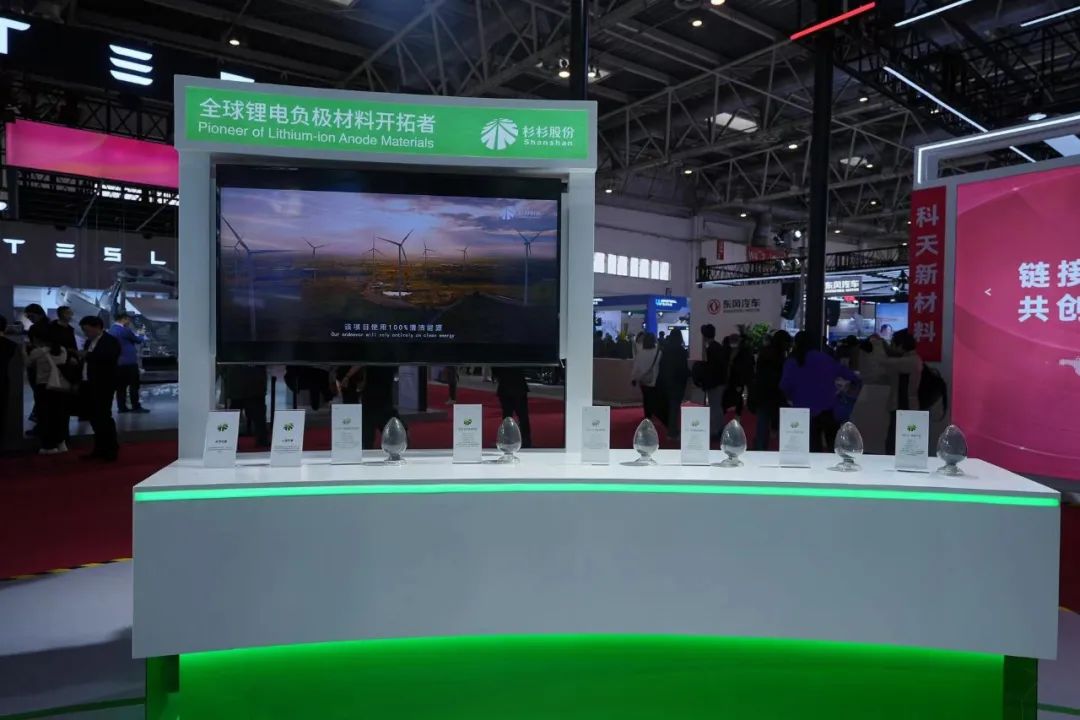 此次链博会,杉杉负极的王牌产品悉数亮相。如“高能量密度方向天花板”KX系列,极限高压实兼顾快充的SK系列,可在-20℃~60℃多场景中实现快充的QE系列,实现万次循环超长生命周期的ESG系列等石墨负极材料;GS、SG等高容量、高首效、低膨胀系列硅基材料;以及凭借先进分布式结构控制技术实现了高压实密度、高容量特性的SHC系列硬碳材料。
