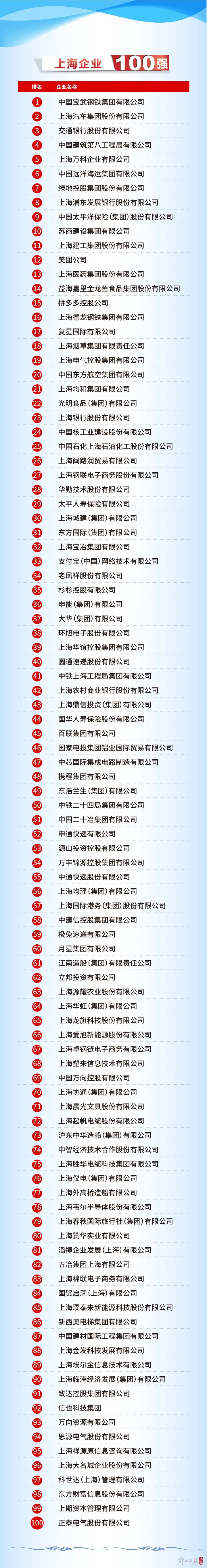 9月3日,上海市企业联合会、上海市企业家协会、上海市经济团体联合会和解放日报社在中国金融信息中心召开2024上海百强企业新闻发布会,揭晓了2024上海企业100强榜单并发布2024百强企业发展报告。杉杉控股有限公司入选榜单,名列第35位。