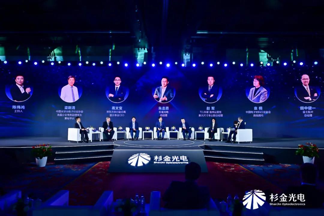中国光学光电子行业协会液晶分会常务副理事长兼秘书长梁新清,中国电子材料协会专家袁桐,杉金光电总经理朱志勇,京东方执行副总裁、显示事业CEO高文宝,TCL华星首席运营官赵军,富士总经理田中健一围绕中国显示产业如何进一步加强开放合作,实现我国科技自立自强进行了深入探讨,带来了精彩纷呈的分享与对话。