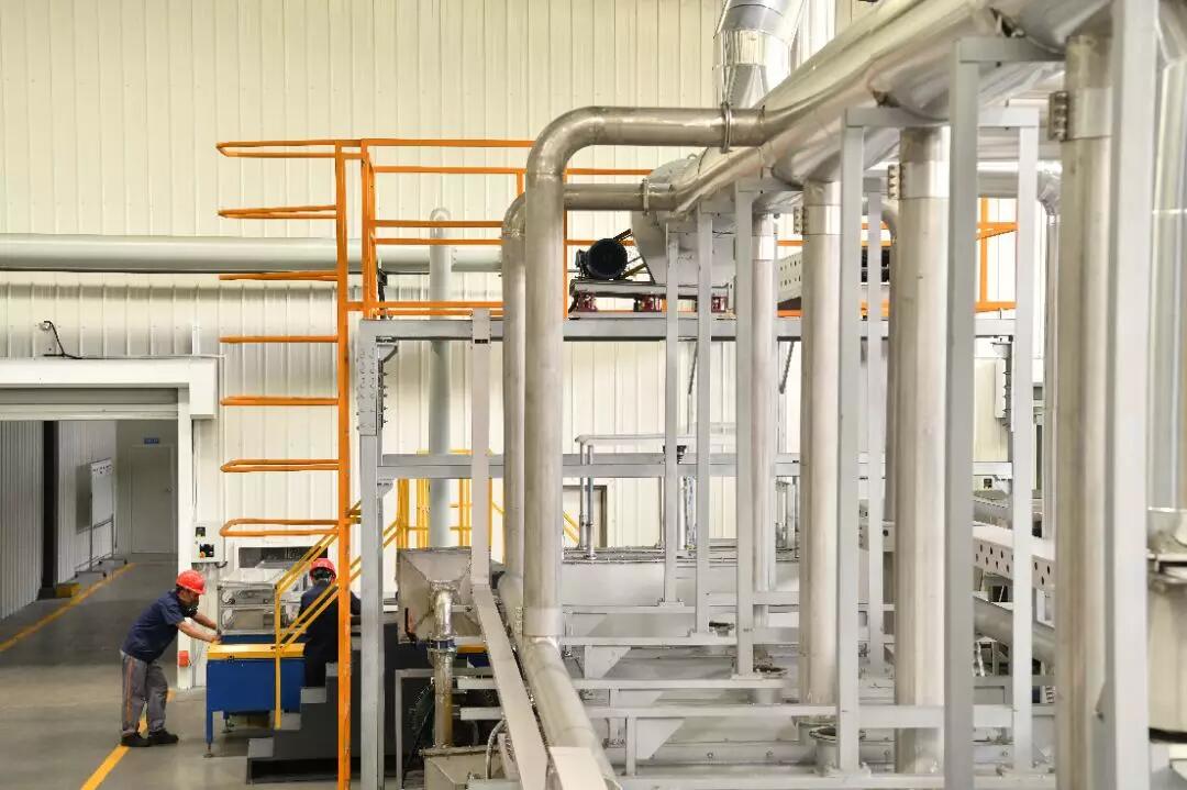 井然有序的自动化生产场面,并不是出自某科幻大片的实验工厂,就在杉杉能源,装料容器进、出窑炉自动控制,同时经自动清洁后返回继续循环使用。