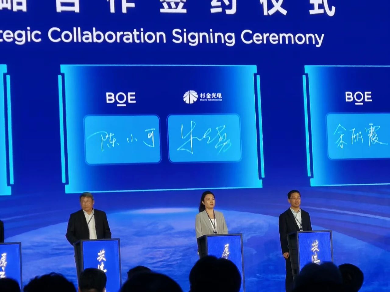大会期间,杉金光电与京东方进一步夯实合作基石,正式签署全新战略合作协议。这标志着双方合作迈入更高层级、更宽领域的新阶段。